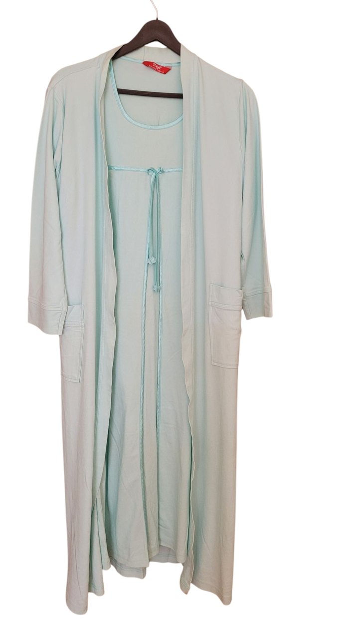 Uzun kollu, bol kesim, bebek yeşili lohusa sabahlığıdır. Uzun boyu ve sade tasarımıyla rahat kullanım sağlar. Gecelik : Omuzdan itibaren 117 cm Sabahlık: Omuzdan itibaren 110 cm Pijama Üstü: Omuzdan itibaren 63 cm