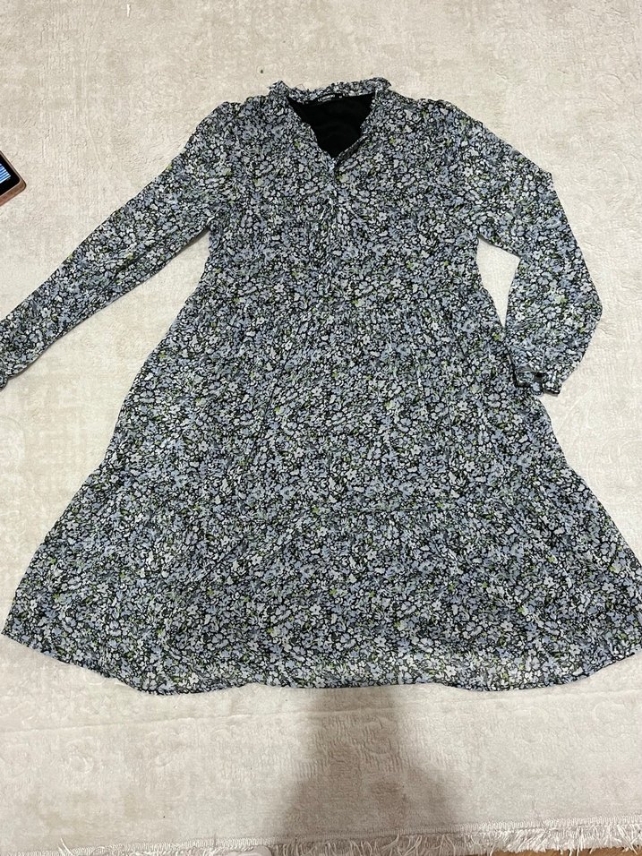 mavi tonları baskın çiçek desenli şifon elbise, mini elbise veya tunik olarak kullanılabilir