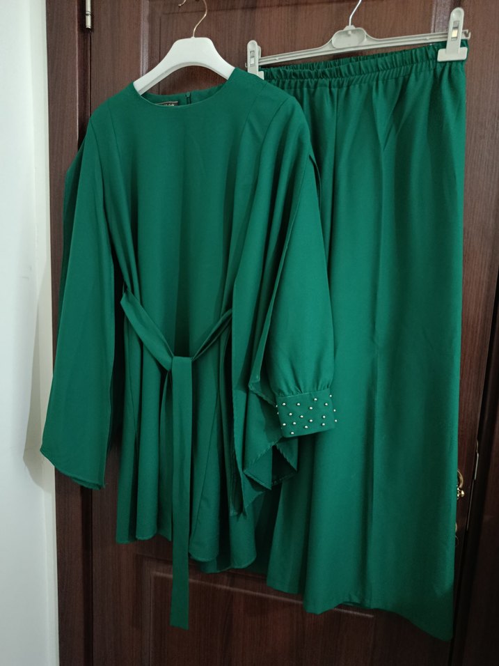 Uzun Kollu, Bol Kesim Yeşil Kadın pantolon üst takım