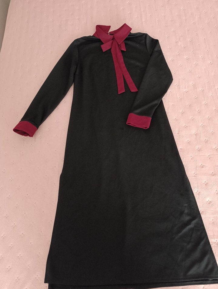 Uzun kollu, yüksek yakalı gotik tunik, bordo fiyonk ve manşet detaylarıyla yumuşak ve sıcak kumaştan, sade ve günlük kullanıma uygun.kenarlarinda yirtmaclar bulunmaktadır