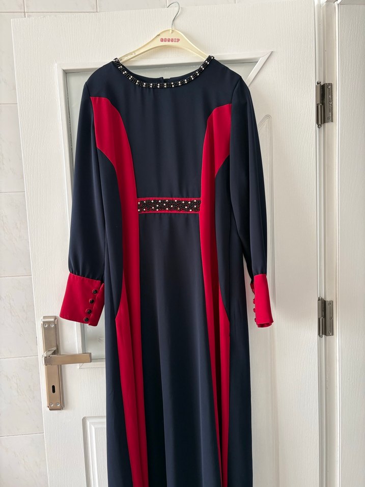 Uzun kollu, yuvarlak yakalı bu elbise sentetik kumaştan yapılmıştır. Bordo ve siyah renklerde, zincir detayları ve nakış desenleriyle sade ve gotik bir tarz sunar. Günlük kullanıma uygundur.