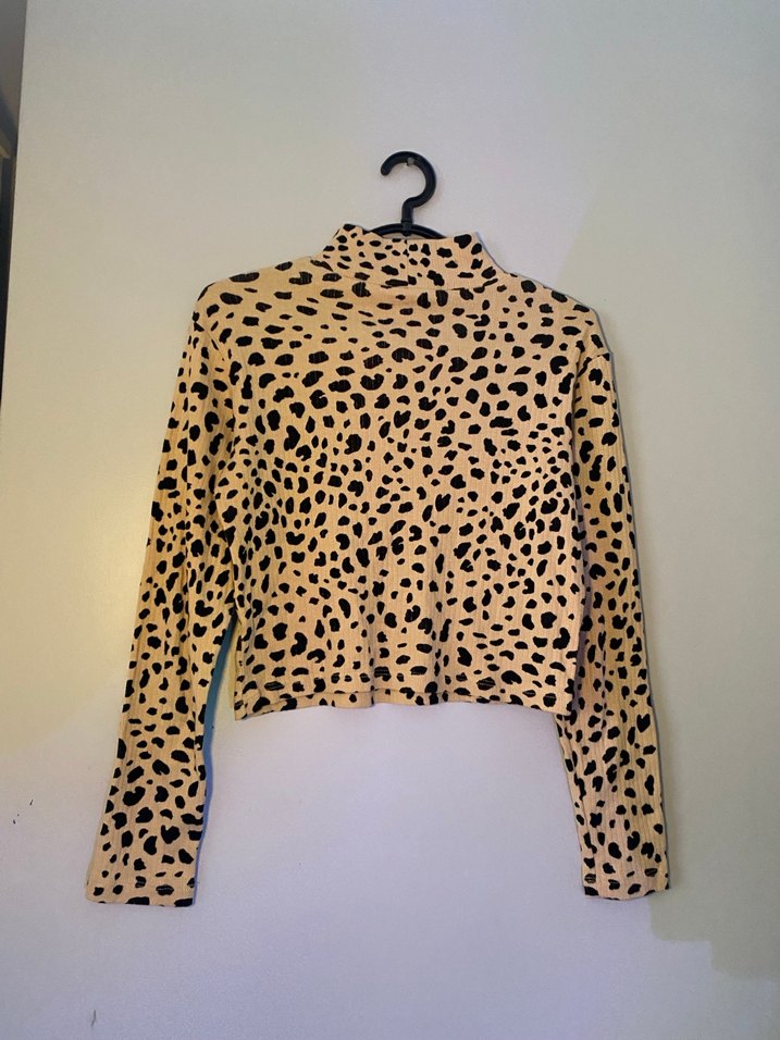 Uzun kollu boyunlu leopar desenli bluz