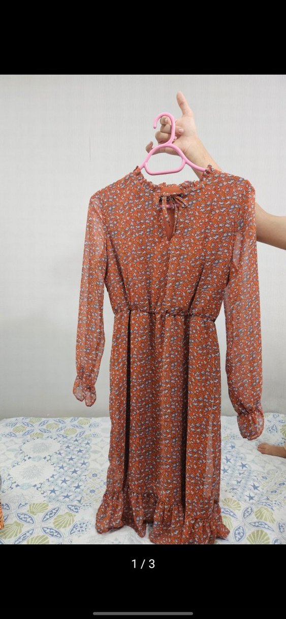 Uzun Kollu Çiçek Desenli Elbise