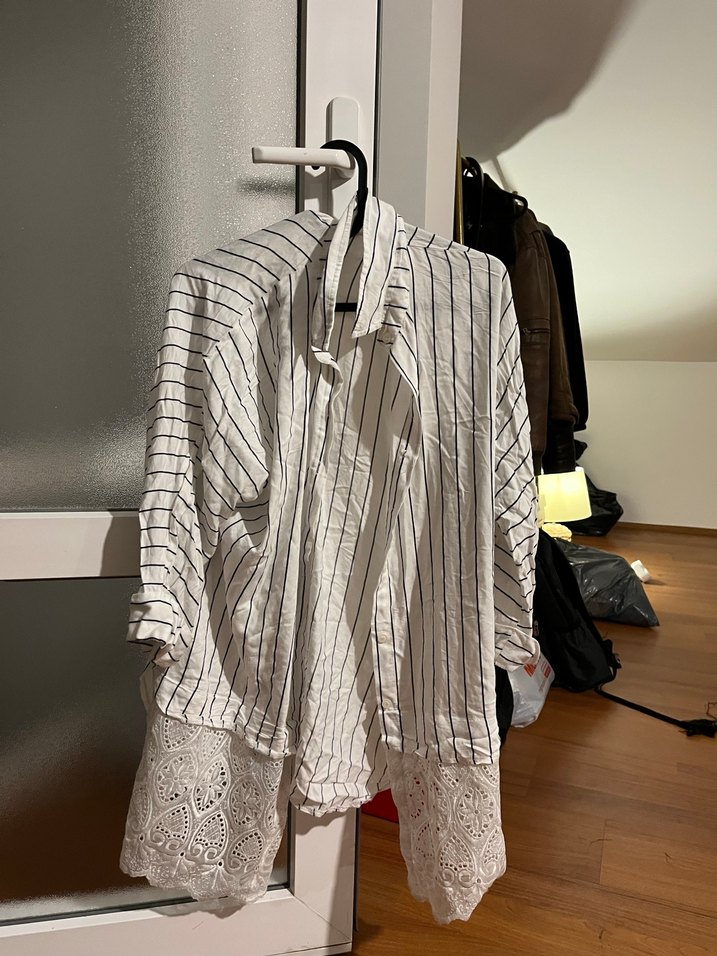Uzun Kollu Çizgili Beyaz Kadın Gömlek