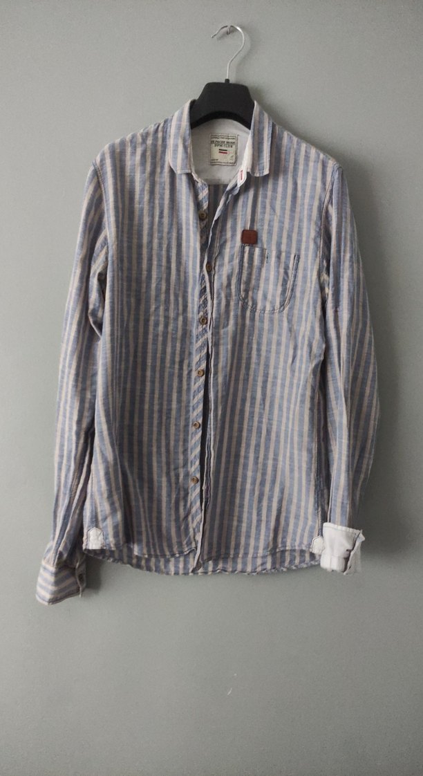 Çizgili keten kumaştan yapılmış, yakalı ve düğmeli uzun kollu erkek gömleği. Cep detayı ve rahat kesimiyle gündelik sokak stiline uygundur. m beden