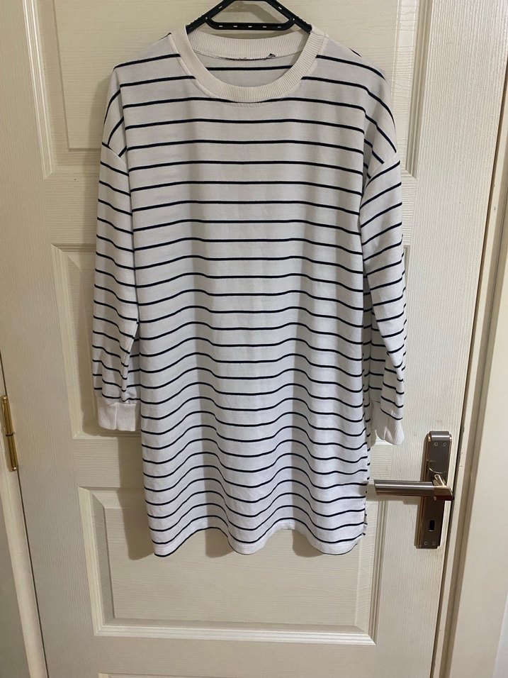 Uzun Kollu Çizgili Midi Kadın Tunik