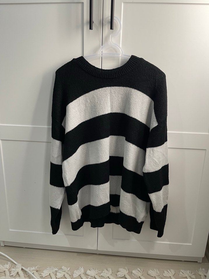 Uzun Kollu Çizgili Örgü Kadın Kazak