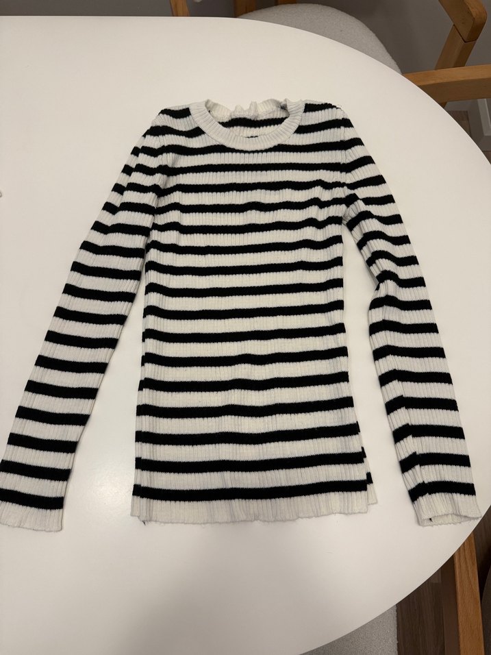 Pamuklu, uzun kollu, bisiklet yaka, çizgili triko kazak. İnce ve dar kesim, milla s beden