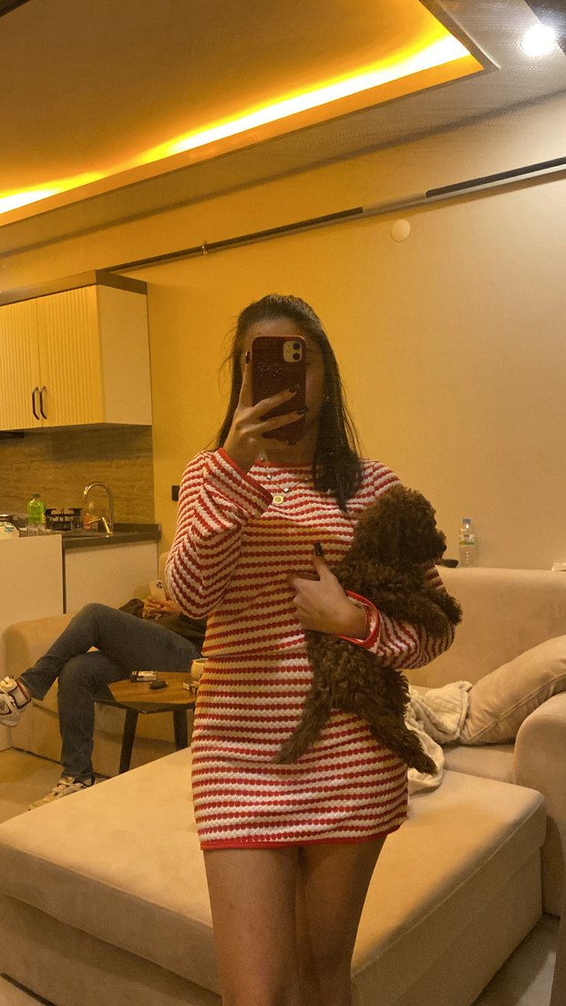 Uzun Kollu Çizgili Triko Elbise