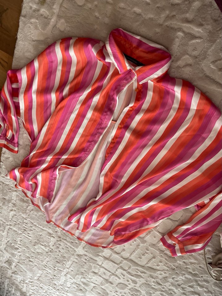 İpeksi kumaştan, uzun kollu, bol kesim gömlek