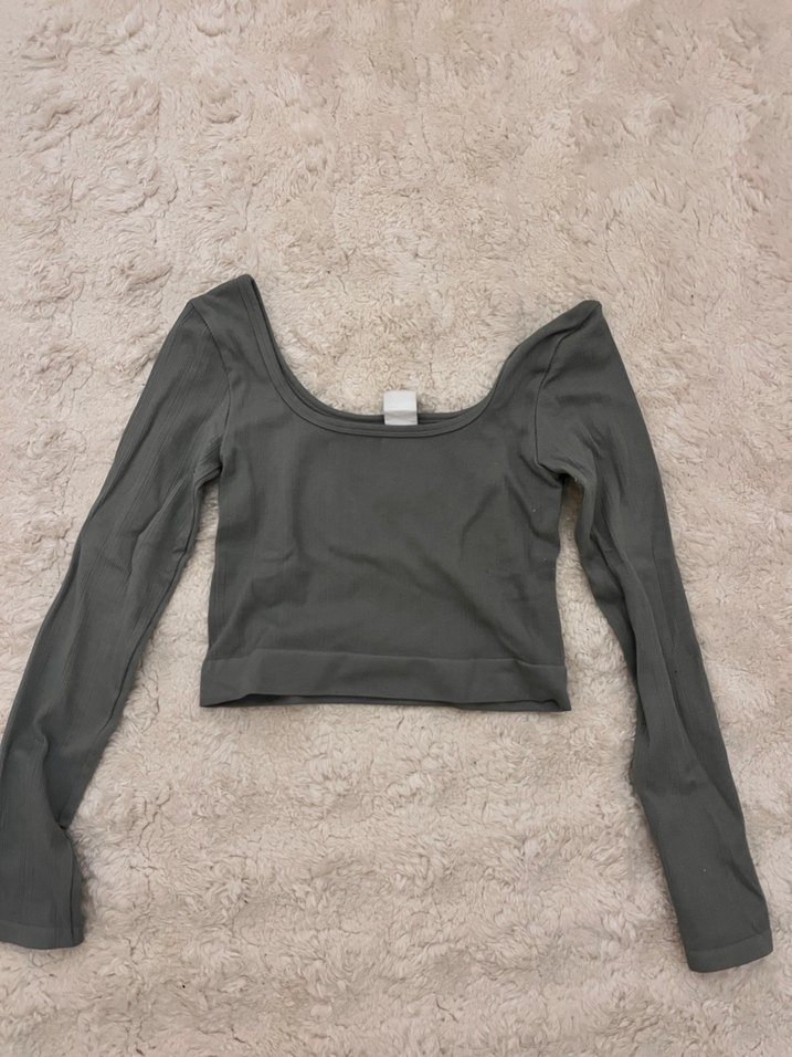 Haki renkte, uzun kollu ve tek renk crop top. Yumuşak ve sıcak kumaştan, rahat ve şık bir günlük kullanım ürünü.