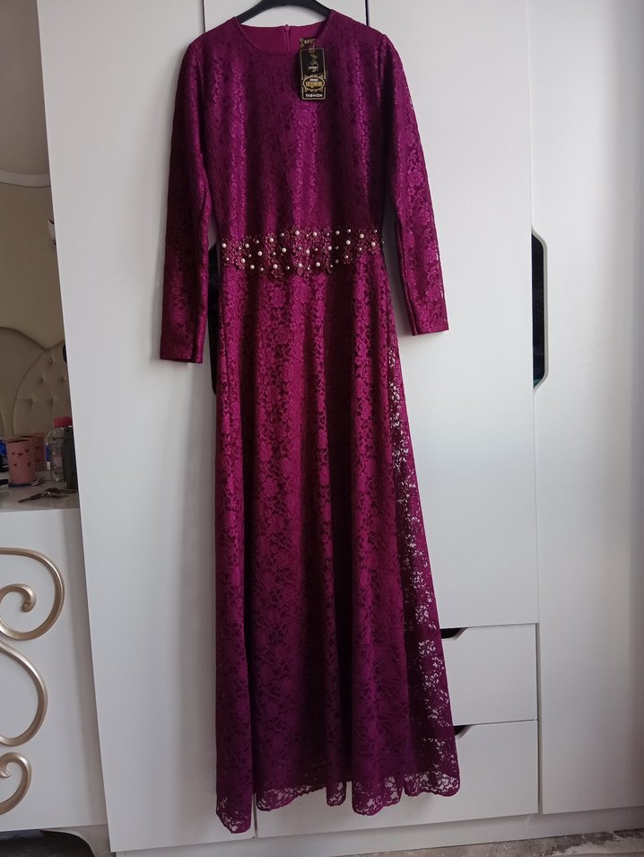 Uzun Kollu Dantel Abiye Elbise