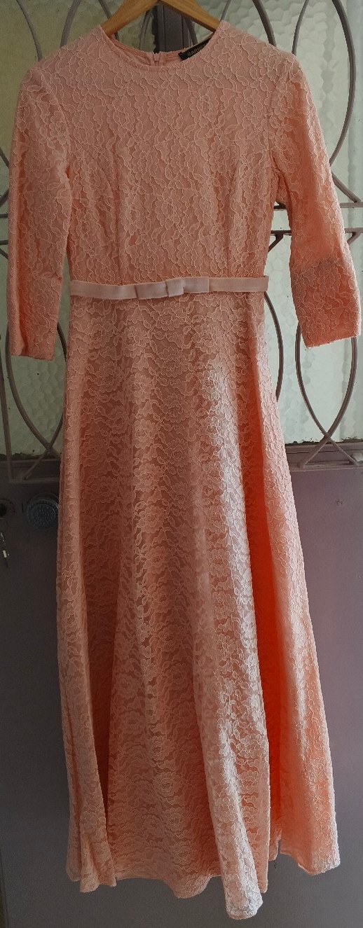 Dantel detaylı, uzun kollu elbise. Vintage tarzda, pastel tonlarda, düğünler için uygun şık bir modeldir. herhangi bir defa mevcut değildir 40-42 beden uyumludur nikah elbisesi olarak bir kez kullanılmıştır