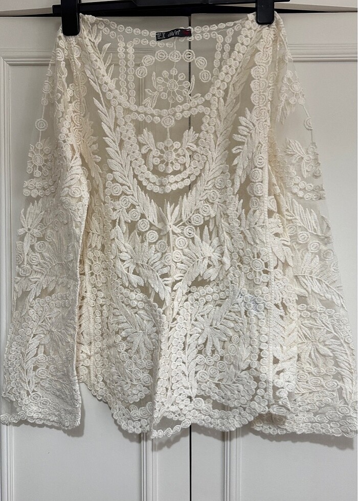 Uzun kollu dantel dokuma bluz