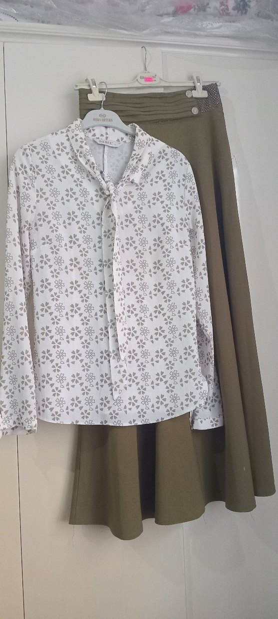 Uzun Kollu Desenli Beyaz Pamuklu Gömlek ve kombine etek