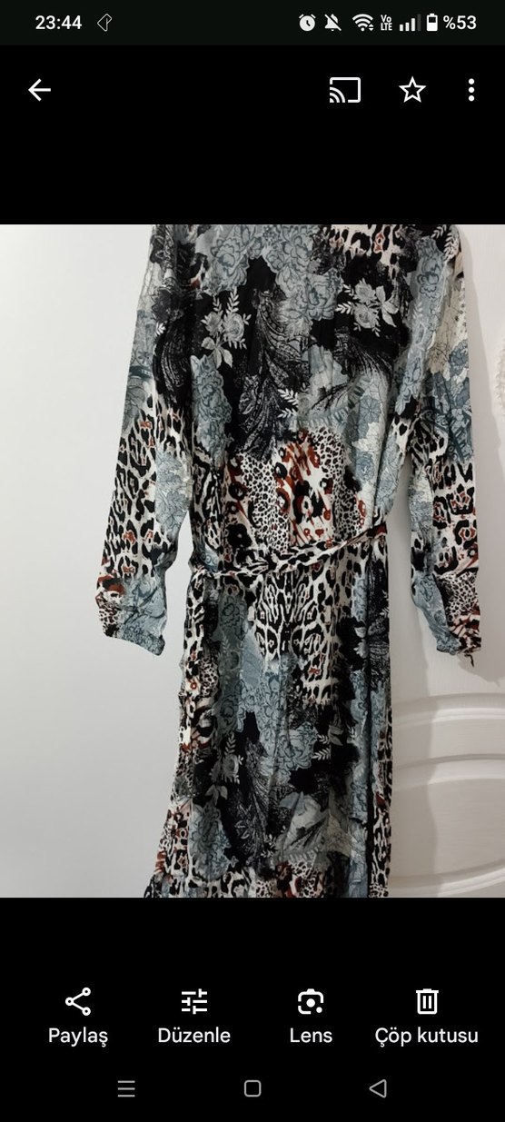 Uzun Kollu Desenli Bohem Gri Elbise ama 42 rahat olur