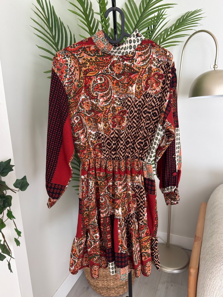 Uzun Kollu, Desenli Bohem Kadın Elbise