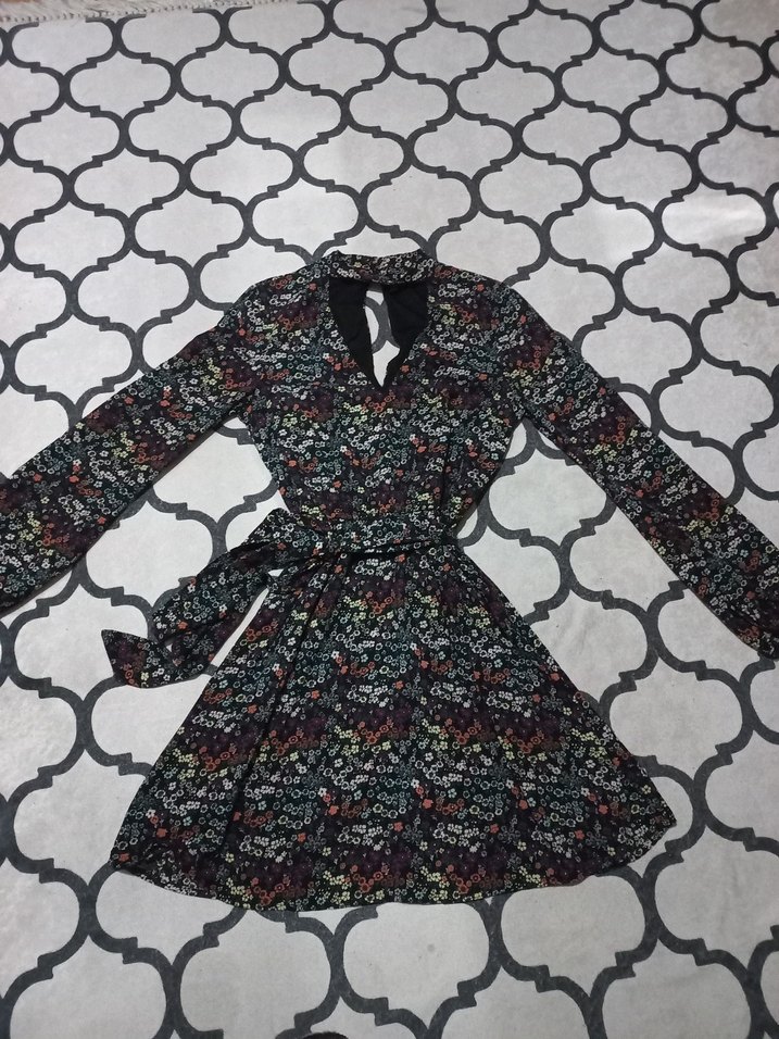 Uzun kollu, V yakalı ve kemerli bel detaylı bohem tarzda, çok renkli desenli ve sentetik kumaştan yapılmış, günlük kullanıma uygun dar kesim elbise. Sayılı kullanıldı.deforme yoktur!!