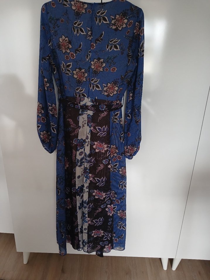 iki kez giyildi yırtmaçlı trendyol elbise bir düğmesi eksik