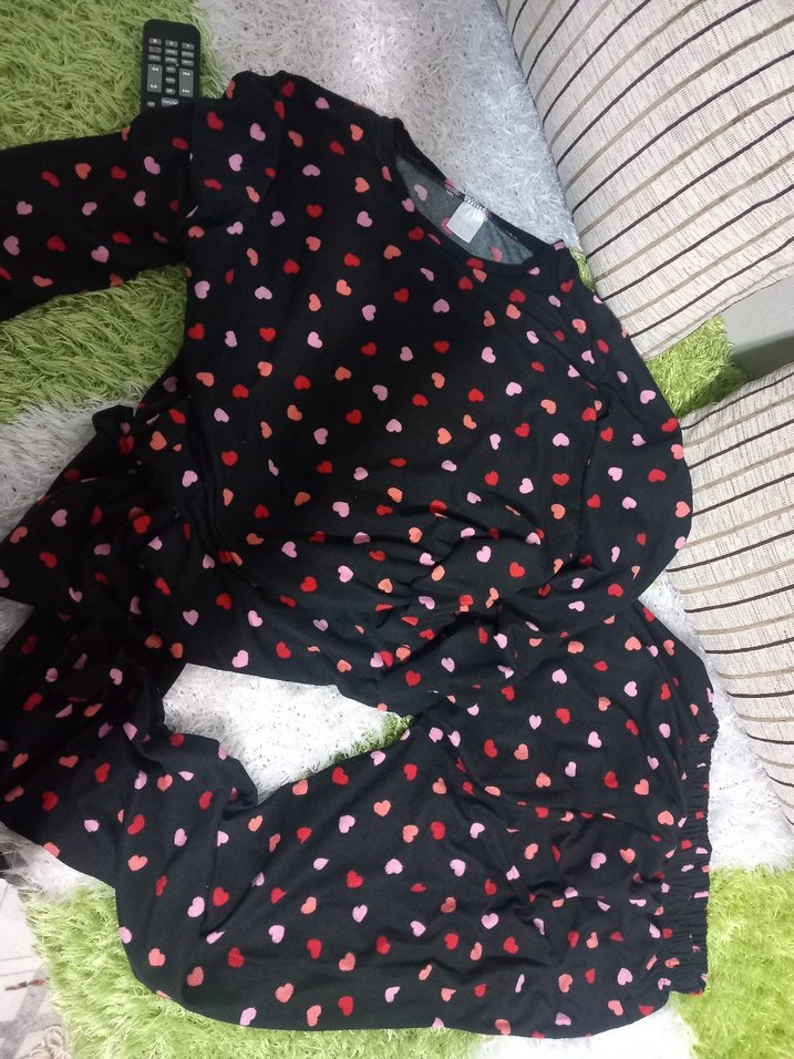 Uzun kollu, bol kesim ve uzun boylu kadın pijama takımı. Koyu renk üzerinde çok renkli kalp desenleriyle rahat sokak stiline uygun. ❤️