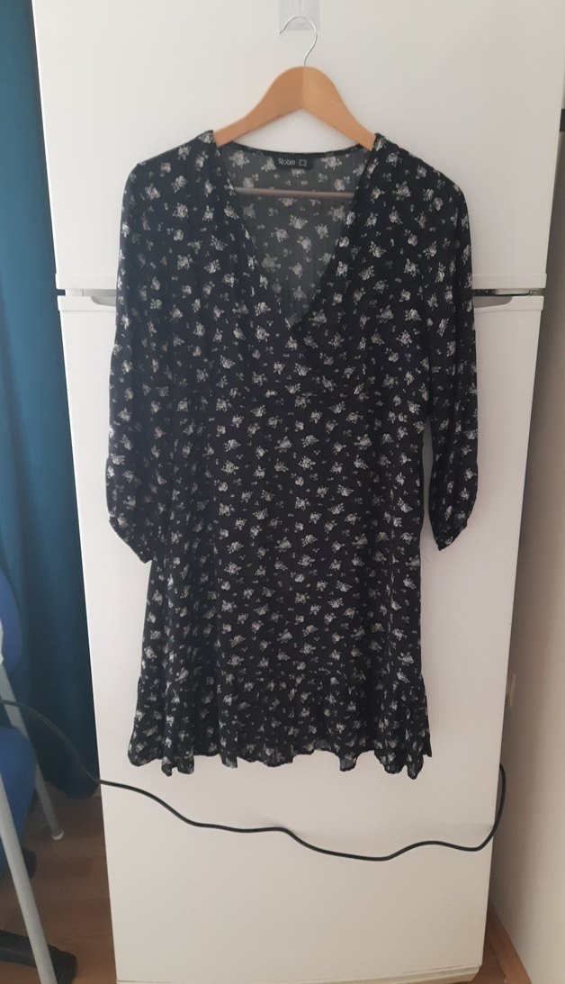 Kruvaze yaka uzun kollu eteği hafif fırfırlı buruşmaz terletmez ipeksi kumaş şık bir kadın elbisesi