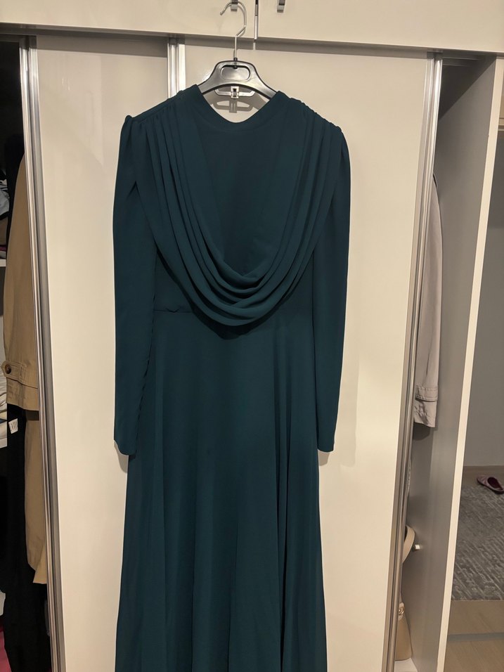 Hiçbir kusuru yoktur sadece bir kez düğünde giyildi koyu yeşil renktir