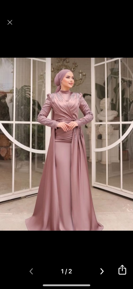 Uzun Kollu Drapeli Kadın Abiye Elbise
