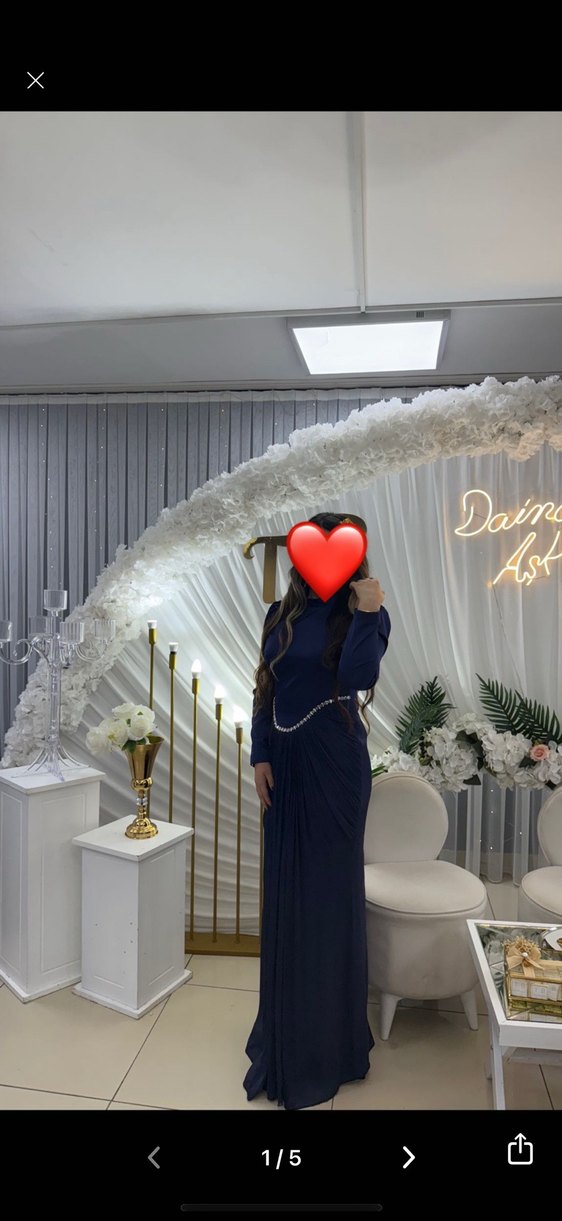 Uzun Kollu Drapeli Lacivert Abiye Elbise