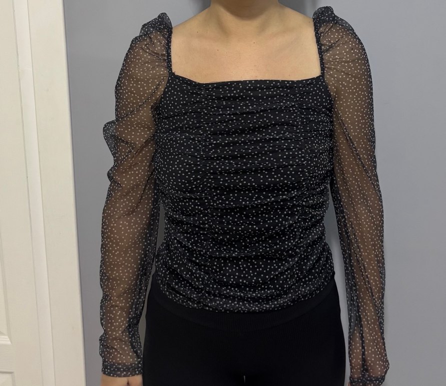 Uzun Kollu, Drapeli Puantiyeli Siyah Bluz