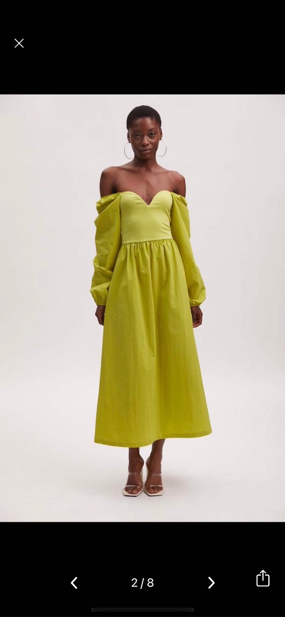 Açık sarı renkte, straplez yaka ve uzun kollu, bol kesim uzun elbise. Pürüzsüz sentetik kumaştan, drapeli ve minimalist sokak stili için uygun, romantik buluşmalar için ideal.