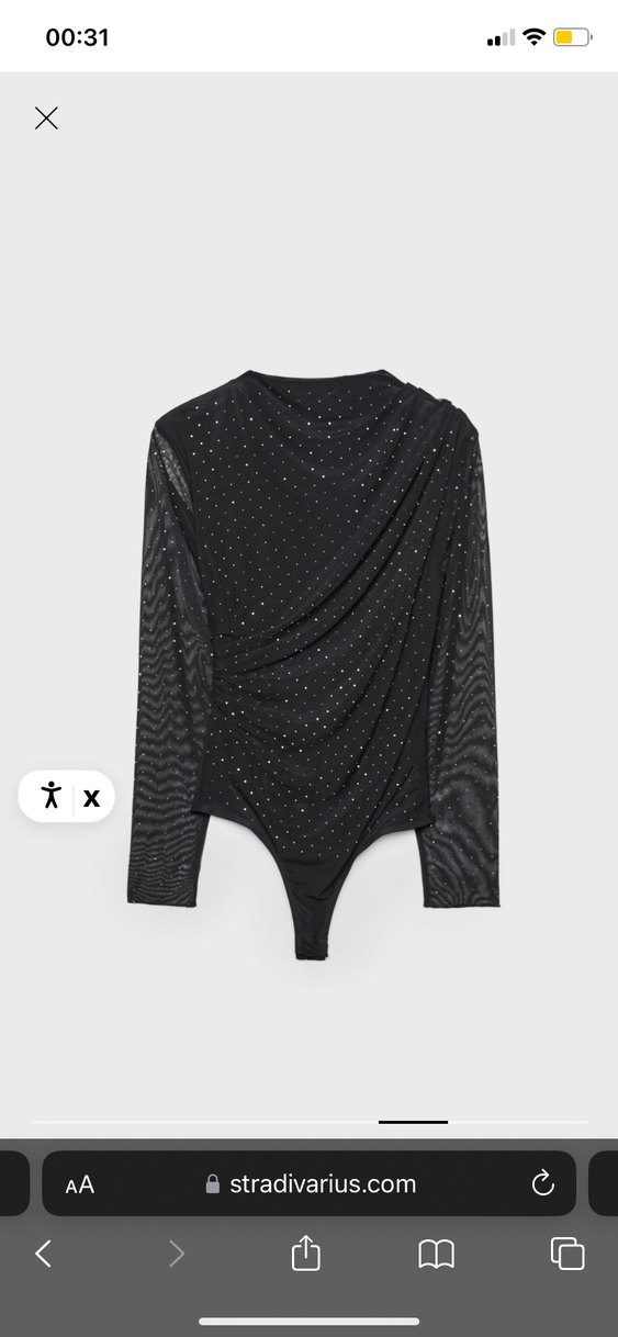 Uzun kollu, yüksek yakalı ve drapeli detaylara sahip siyah, vücuda oturan bluz. Parlak sentetik kumaştan, şık ve gösterişli parti kombini için uygundur.