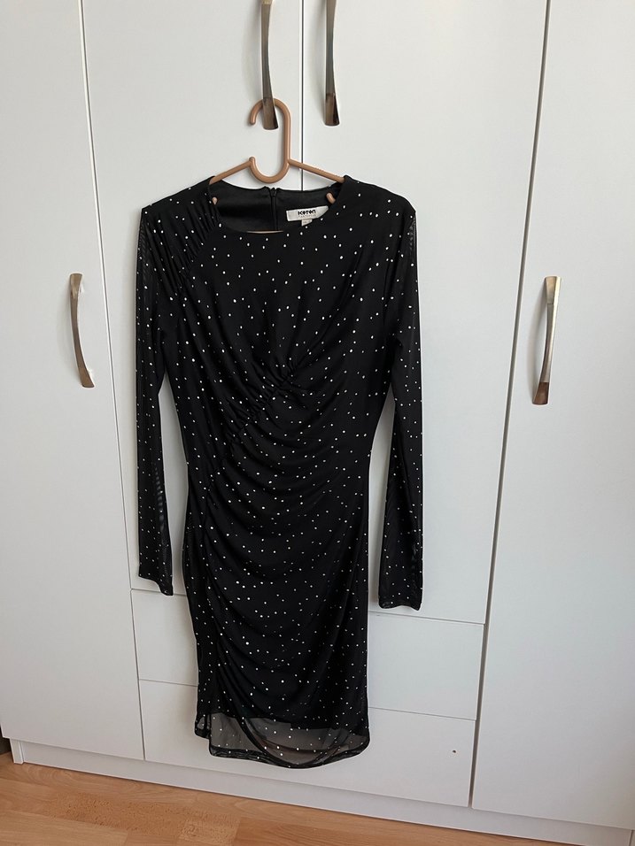 Uzun Kollu Drapeli Siyah Gece Elbisesi