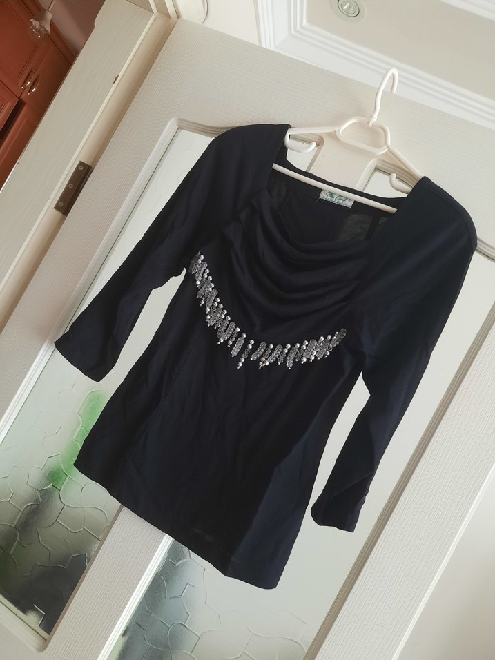 Özel butik ürünü,uzun kollu,degaje yaka ve drapeli detaylı,taş süslemeli,vatkalı,kaliteli ve çok şık siyah bluz.boy 67cm.ikikolaltı tekyön 43cm.etek tekyön48cm.