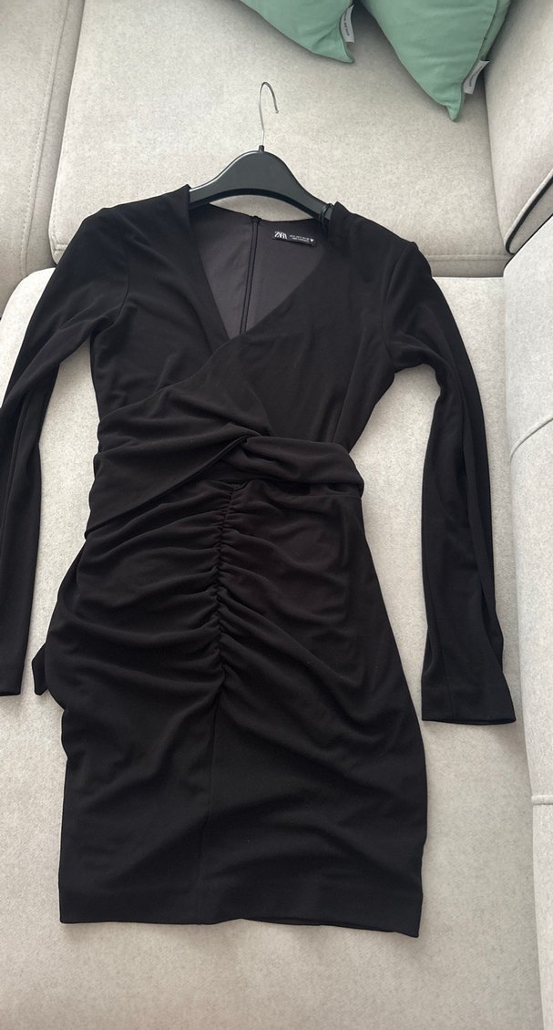Uzun Kollu Drapeli Siyah Mini Elbise
