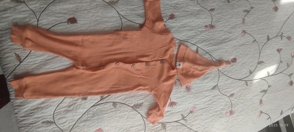 Düğmeli, uzun kollu, kahverengi pastel tonlarda, yuvarlak yakalı bebek kız body. Desensiz, yumuşak ve rahat kumaştan üretilmiştir.