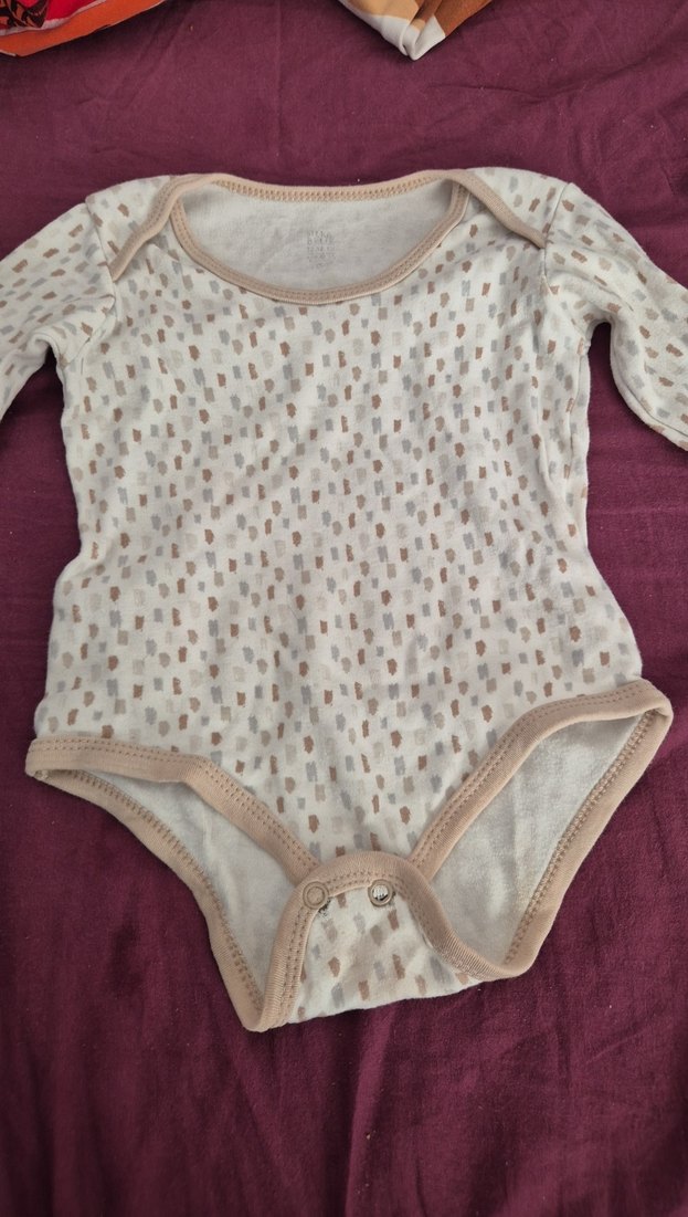 Bej renkli bebek kız body, uzun kollu, yuvarlak yakalı ve düğmeli yapısıyla kolay kullanım sağlar. Yumuşak pastel tonlarda, hafif desenlidir.