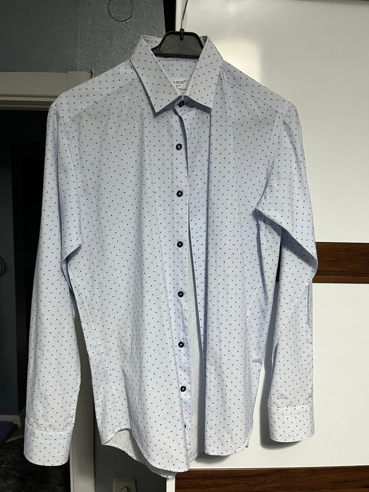Uzun kollu, düğmeli ve yakalı erkek gömleği. Gri-beyaz baskılı deseni ve regular fit kesimi ile ofis ve günlük kullanıma uygun, sentetik kumaştan üretilmiştir.