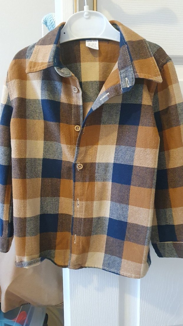 Erkek çocuklar için uzun kollu, düğmeli, yaka detaylı kareli gömlek. Kahverengi, gri ve mavi tonlarında, rahat kesim ve yumuşak sıcak kumaştan üretilmiştir.