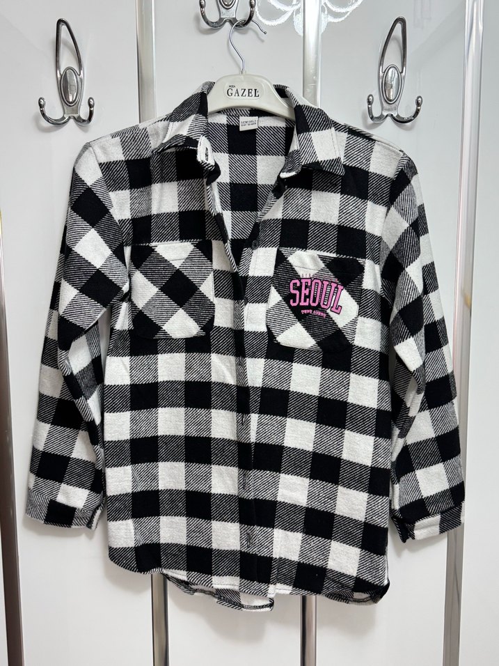 Uzun kollu, düğmeli gri kareli gömlek. Notlu yakalı, göğüs cebinde baskılı detaylı. Rahat ve sıcak dokulu, salaş kesim.