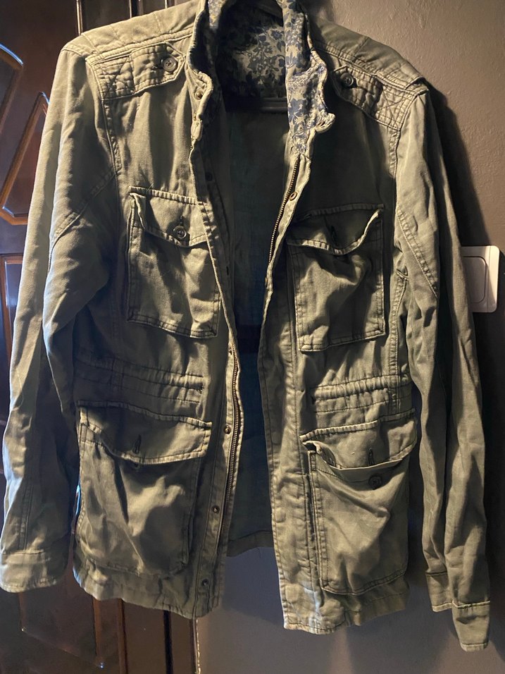 Bu kadın keten ceketi, düğmeli ve kesik yakalıdır. Bol kesim, uzun kollu ve çoklu ceplidir. Günlük kullanım için uygun, salaş ve grunge tarzda bir parça.