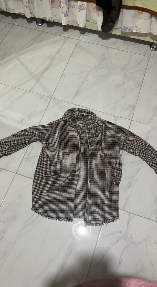 Kadın gömlek, uzun kollu ve notlu yaka detayına sahip. Düğmeli ön kısmı ve kahverengi-gri ekose deseniyle rahat kesim sunar. Günlük sokak stili için uygun.