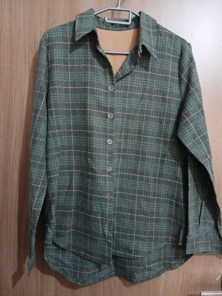 Yumuşak keten kumaştan yapılmış, düğmeli ve uzun kollu, gri ve bej ekose desenli, notched lapel yakalı ve regular fit gömlek. Günlük sokak modası için uygun.