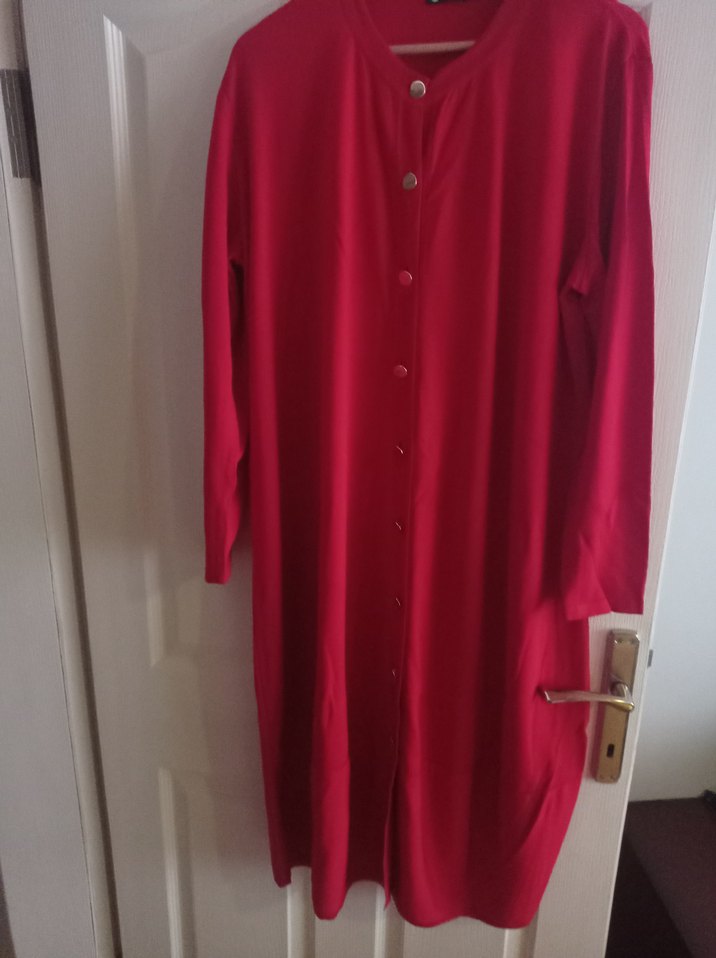 Uzun kollu, düğmeli ve notched lapel yakalı kırmızı kadın tunik. İpek gibi parlak kumaştan, rahat ve sade tasarıma sahiptir. Günlük kullanıma uygundur. ürün merserizedir.