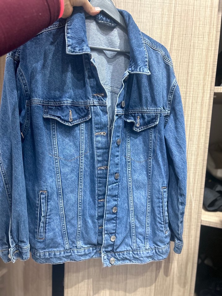 Düğmeli ve uzun kollu, bol kesim mavi denim ceket. Notch yaka detayıyla günlük kullanıma uygun rahat bir model.