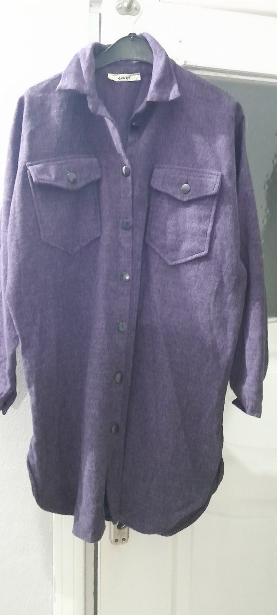 Uzun Kollu Düğmeli Mor ince kaşe kumaş Gömlek tunik