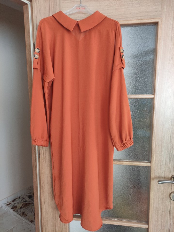 Uzun Kollu Düğmeli Salaş Tunik ufak bi defosu var kremit renk
