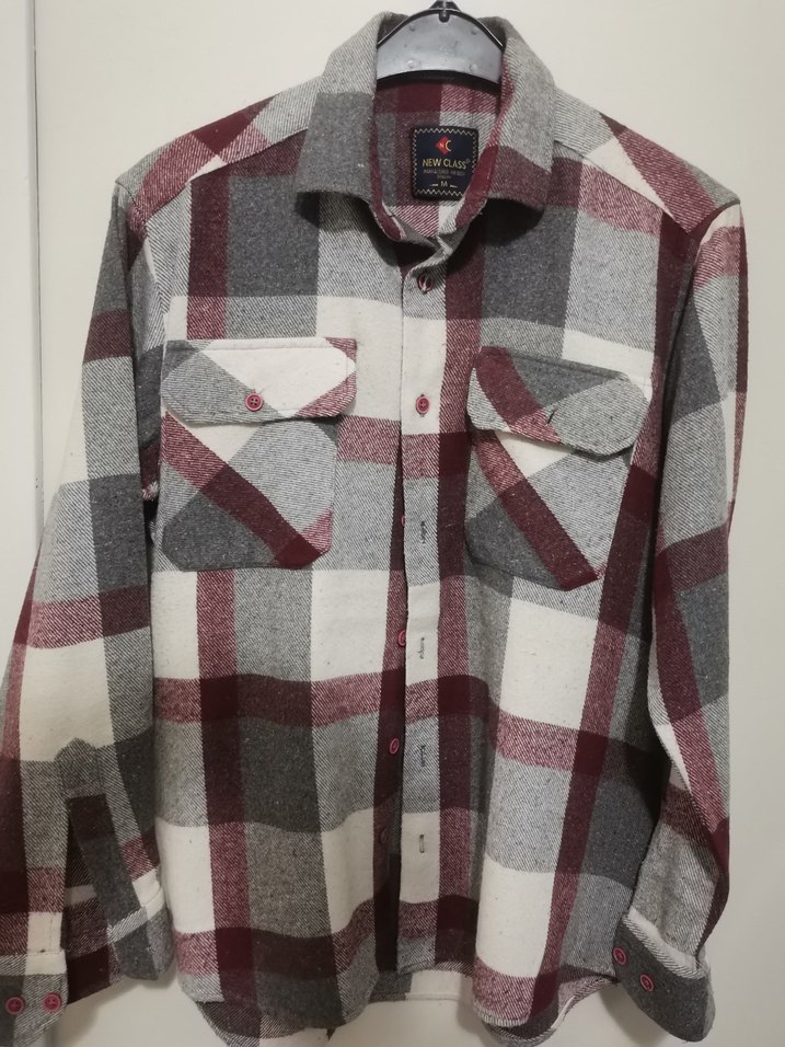 Bu erkek gömlek düğmeli ön kısmı, uzun kolları ve kesimli yaka detayına sahiptir. Normal kesim ve yumuşak, sıcak tutan kumaş kullanılmıştır. Gri, beyaz ve bordo tonlarında ekose desenlidir. İki adet düğmeli göğüs cebine sahiptir.
