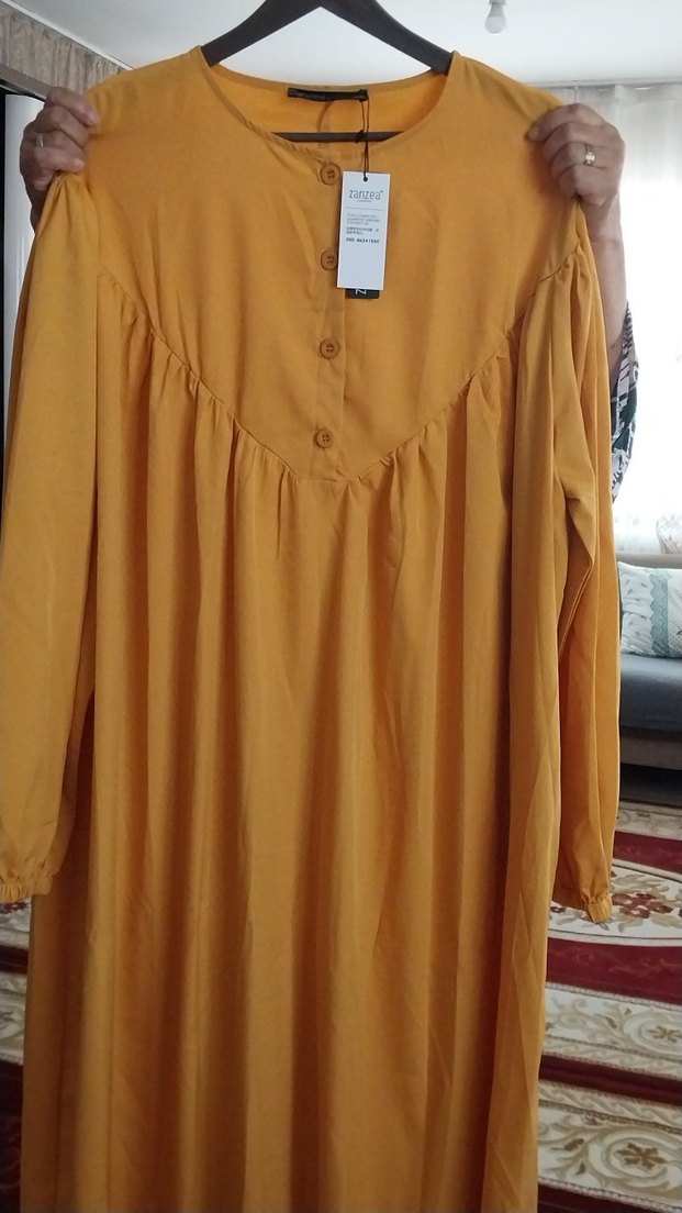 uzun kolu elbise sari renkte
