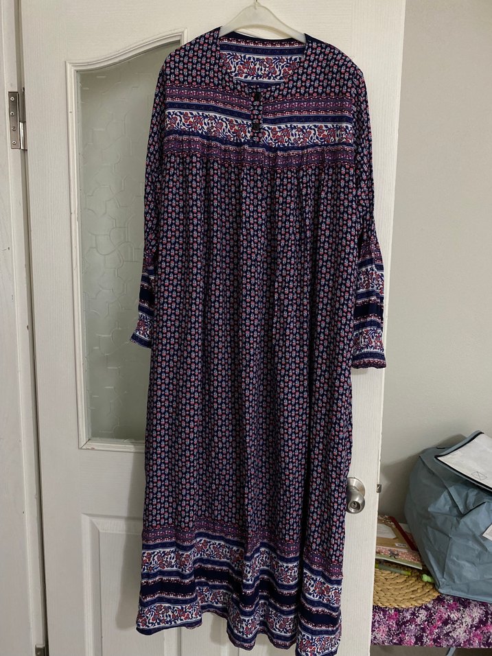 131-132 cm. İki koltuk altı arası ölçü 66-67 cm. Bilekleri lastiklidir. Kumaşı yumuşacık bir elbise. 2-3 kez giyildi. Kilo verince bedeni olmadı o yüzden satılıktır. Omuzları vatkalıdır. Rahatsız ettiği için etiketini çıkarmıştım,44 beden