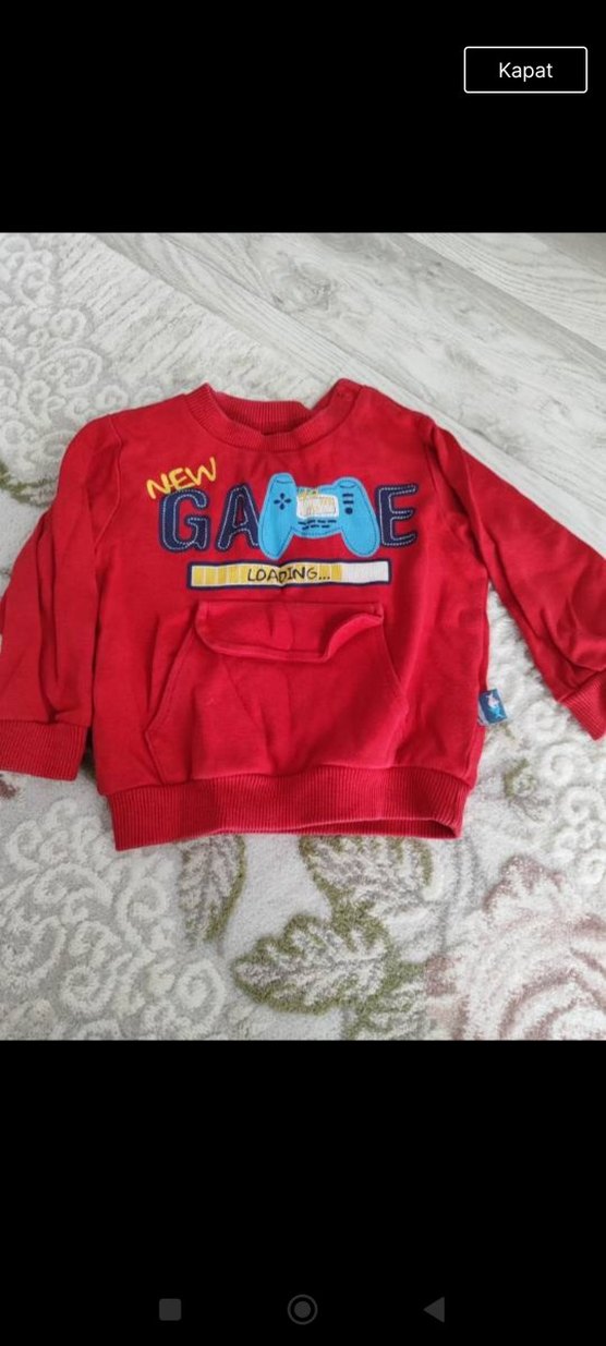 Kırmızı renkli, uzun kollu ve bisiklet yaka erkek çocuk sweatshirtü. Yumuşak polar kumaştan örülmüş, bol kesim ve renkli oyun temalı baskılar içerir.